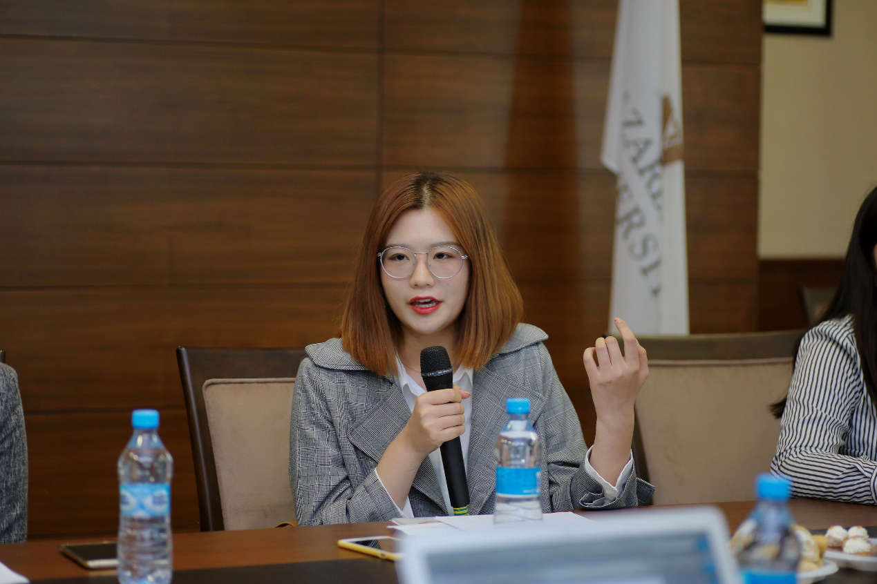 9月5日下午的青年合作圆桌会议上,胡馨雨同学作为太阳集团城官网1407学生代表,与来自中国人民大学、北京师范大学、北京外国语大学及纳扎尔巴耶夫大学的学生围绕“一带一路”与青年使命、“一带一路”倡议下的青年交流模式创新等议题进行了深入的交流。