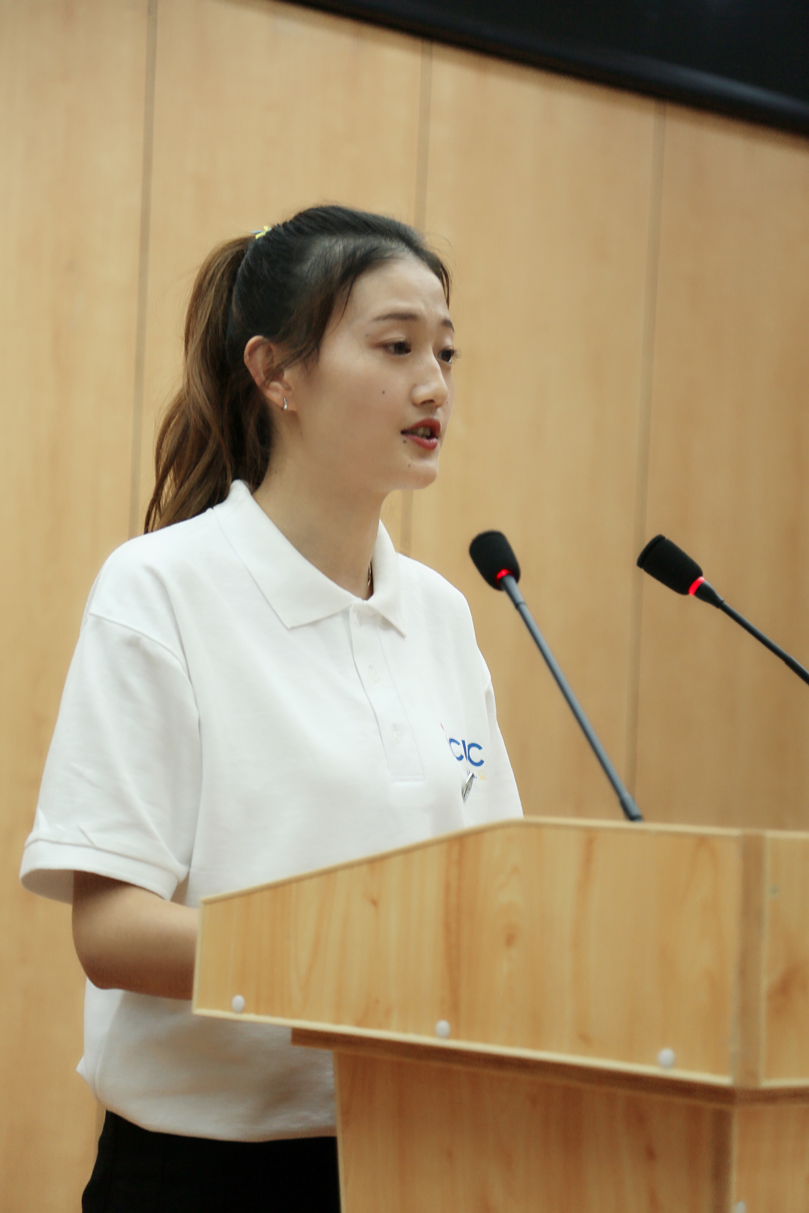 接着,硕士新生代表严陈琛同学发言,表达了自己对于研究生生活的向往和期待,她表示将勤奋学习,不负期待,努力成为一名优秀的国际化传媒人才。