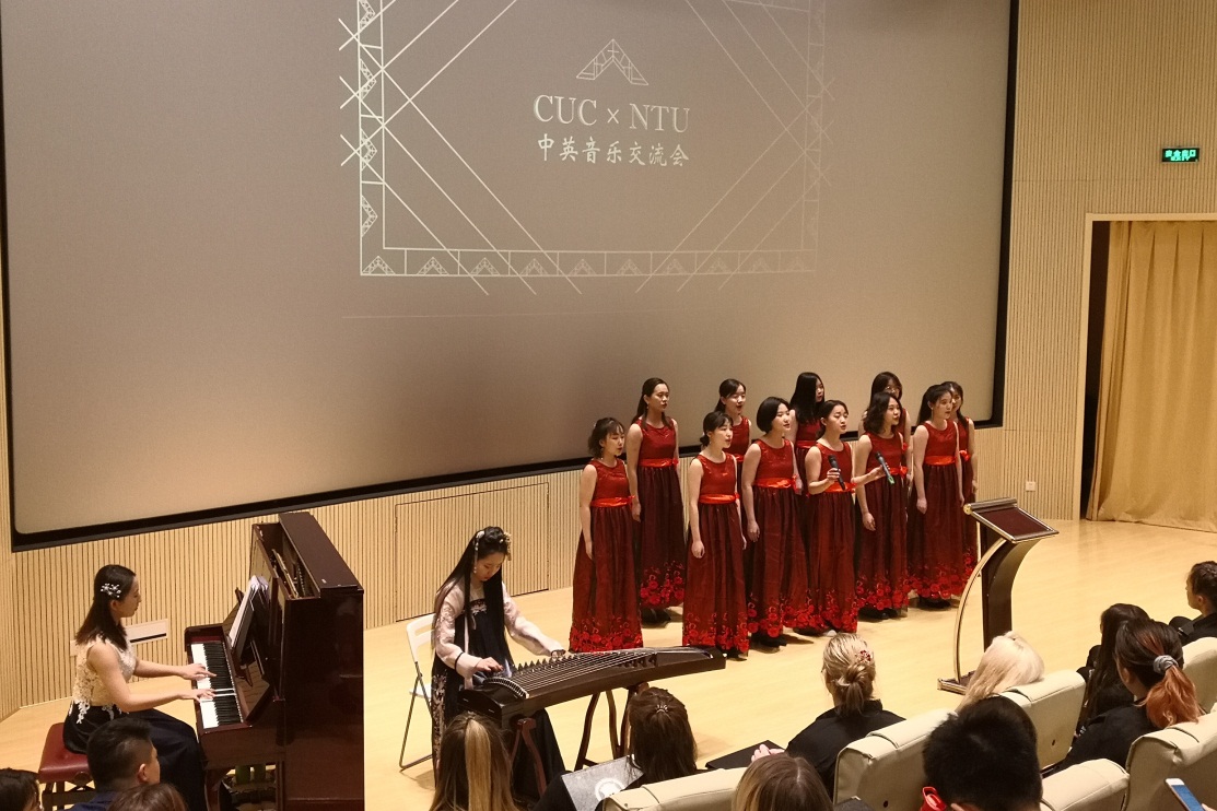 (通讯员 史倩慧 王炳云 郭楚怡 摄影 焦哲)2019年4月8日下午,由我校与英国诺丁汉特伦特大学联合举办的CUC-NTU中英音乐交流会在广告博物馆报告厅举行。交流会的主题为“用音乐架起友谊桥梁”,诺丁汉特伦特大学二十人合唱团来访我校并献上了精彩表演。我校党委书记陈文申、党委副书记姜绪范、校长助理王志出席了本次活动。