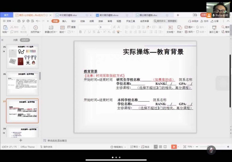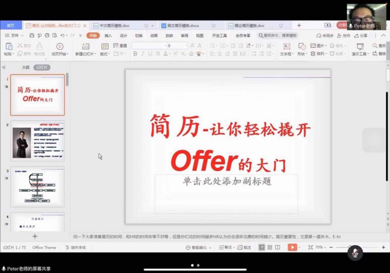 (通讯员:王梓越 肖诗琪 摄影:陈一豪)4月6日晚,太阳集团城官网1407举行“简历——让你轻松撬开offer的大门”主题讲座。本次讲座特邀前中粮集团HR、全球职业规划师张斌老师主讲,并采用线上直播方式进行。