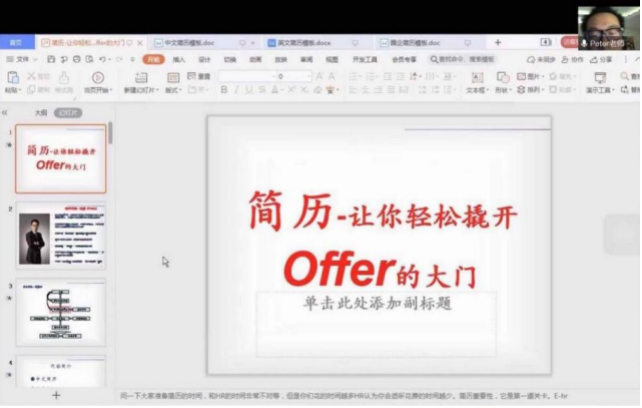 如何向用人单位展现自己,在简历筛选过程中脱颖而出,是求职就业的第一步。4月6日,学院力求在就业指导中,为毕业生提供更具可操作性的培训,特邀前中粮集团HR、全球职业规划师张斌传授简历各板块撰写细则,全方位、多维度地向同学们介绍简历写作的“通关”诀窍,系统性梳理了递交给国企与外企简历的应含内容及形式结构,依据求职发展方向提供精准就业指导。讲座从业界一线角度出发,助力学生提高求职软实力,提升求职效率。