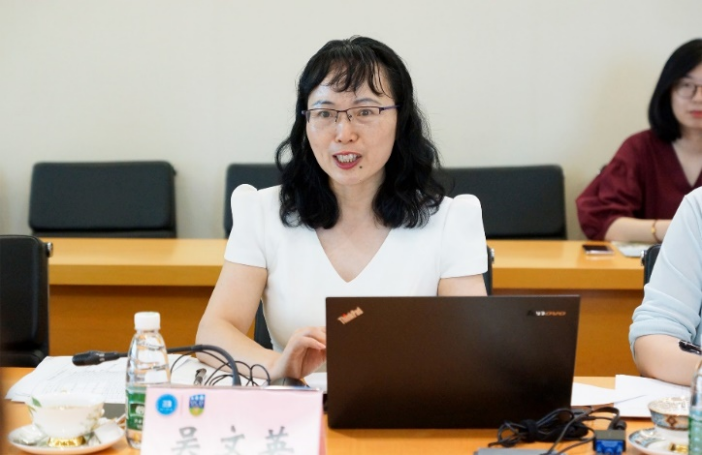 都柏林学院党委书记、院长吴文英介绍了都柏林学院的建院背景与历史、学院概况、教育教学与人才培养、学生支持与服务,以及办学成果等。会上,吴文英书记分享了多年中外合作办学的工作经验和心得体会,特别介绍了“以全球视野、国际规范运行学院,以中国特色、多元文化服务师生,以职业精神、人本情怀培育学生”的工作理念。