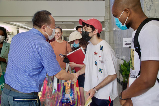 (通讯员:李璇 摄影:安路希)9月8日,中传校园迎来了2021级国际学生新生。面对2021年新冠肺炎疫情形势,我校及时调整招生方案,优化招生流程,全部采取线上审核和线上面试方式,圆满完成招生任务,共录取213名国际学生,其中本科生118名,硕士研究生51名,博士研究生9名,非学历生35名,学生来自50个国家和地区,招收国际学生新生数量较2020年相比有小幅增长。受新冠肺炎疫情影响,大部分在境外的国际学生无法到校报到,只能在线上进行“云报到”,有20名新生来校报到,来自15个国家和地区。