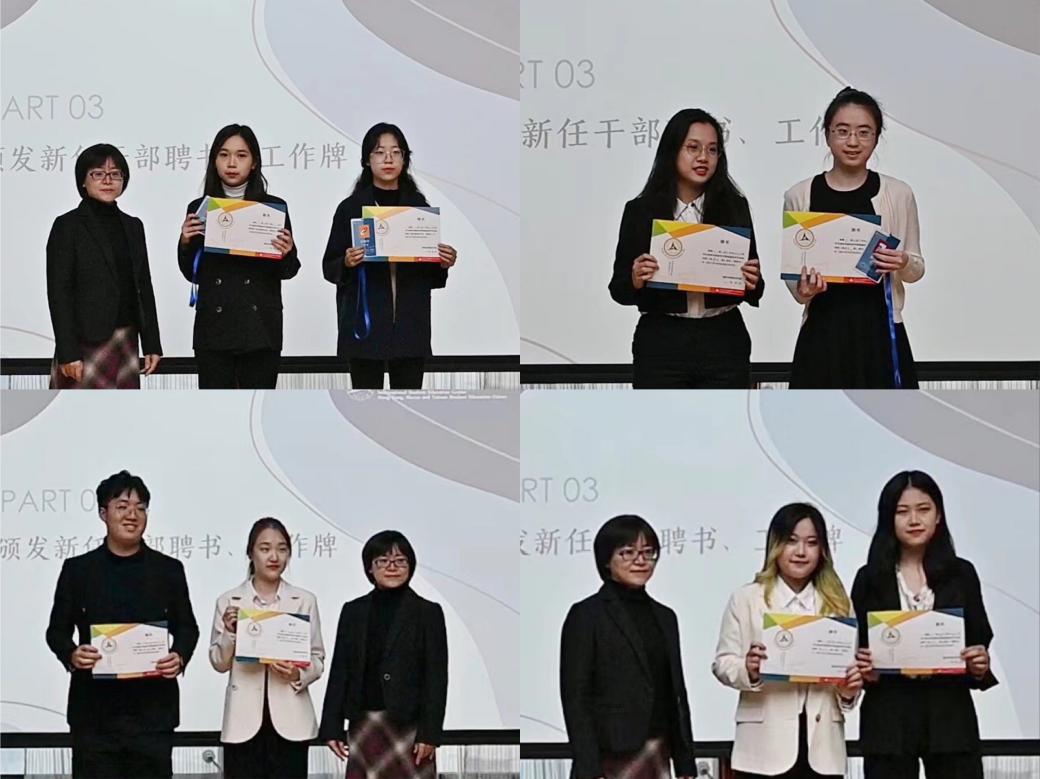 接着,周杨老师宣读了融媒体学生实践团第二届新任干部与新进干事名单,由唐妮娜老师、师景老师、肖诗琪老师颁发聘书及工作牌。