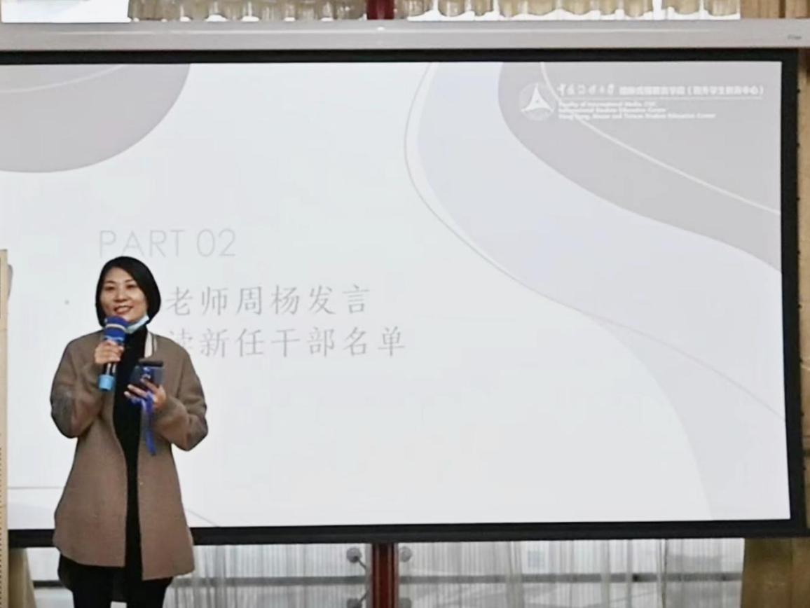 随后,融媒体学生实践团指导老师周杨发言。周老师深情寄语,肯定了同学们过去一年的工作,希望新老成员带着对学院的爱和真诚继续努力,在融媒体学生实践团这个平台上发挥所长,快乐成长,为学院的发展贡献力量。