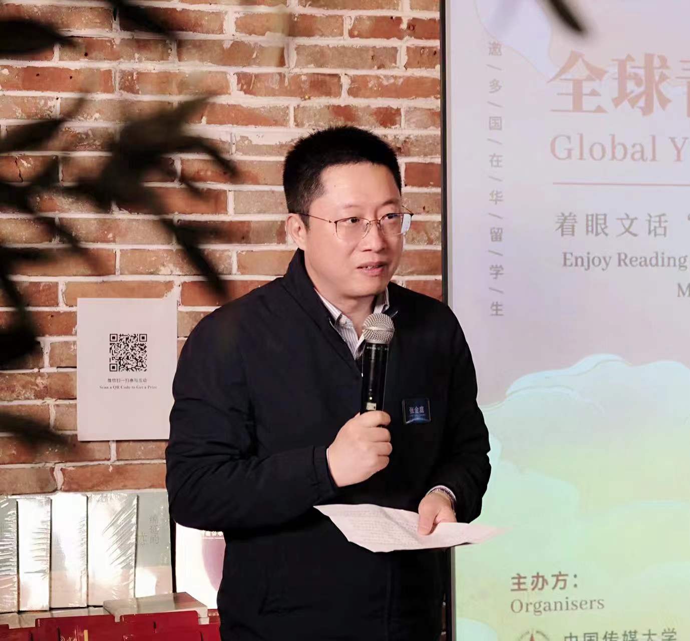 中国外文局文化传播中心张金庭主任在致辞中谈到:个人生活因阅读而精彩、人类文明因阅读而延续、文明因交流而多彩。“全球青年文化沙龙·悦读派”活动依托于培养了一大批了解中国的国际友人的中传与聚焦于中华文化国际传播和中外文明交流互鉴的中国外文局两大平台,必将为拥有不同文化背景的学生们以丰富多彩的方式增进彼此了解,促进中外文化与文明的交流互鉴,促进世界文化的共同繁荣与发展,共同构建人类命运共同体做出积极而有益的贡献。