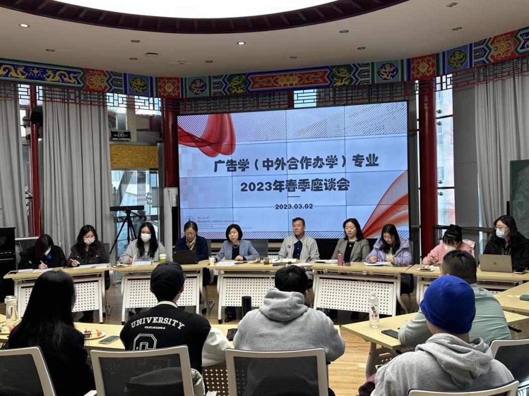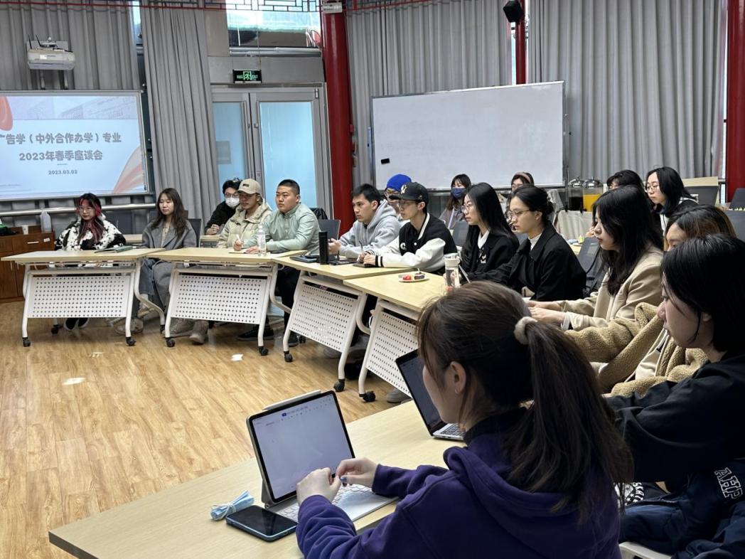 本次座谈会为师生提供了融洽自由的交流环境,师生们畅所欲言、气氛热烈,大家围绕学业提升、校园文化活动、双创教育、就业规划等展开交流,为广告学(中外合作办学)专业学生进一步明确学业生活规划提供了有益指导。