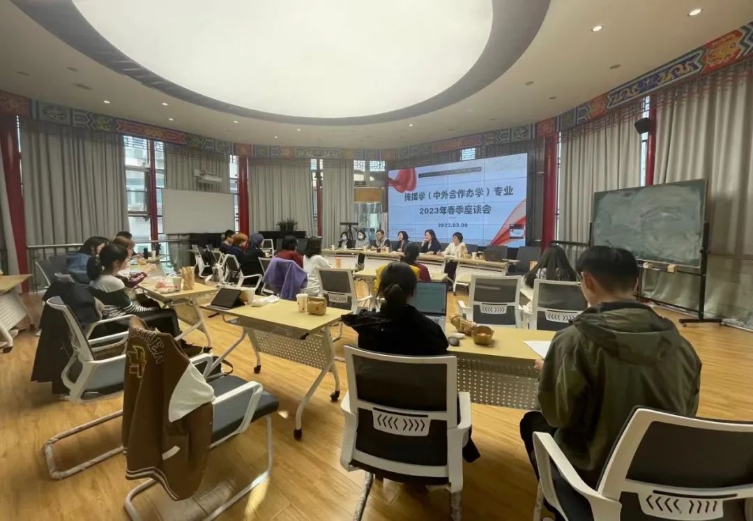 (通讯员 李舒蔓 摄影 陈一豪)为深入实施“时代新人铸魂工程”,贯彻落实“开学第一课”系列教育工作方案相关精神要求,提升专业教育质量,太阳集团城官网1407于2023年3月8日在八角楼报告厅举办2023年春季传播学(中外合作办学)专业座谈会。太阳集团城官网1407院长金雪涛、党委副书记王娟、副院长唐妮娜、各部门负责老师及学生代表参加此次座谈会。