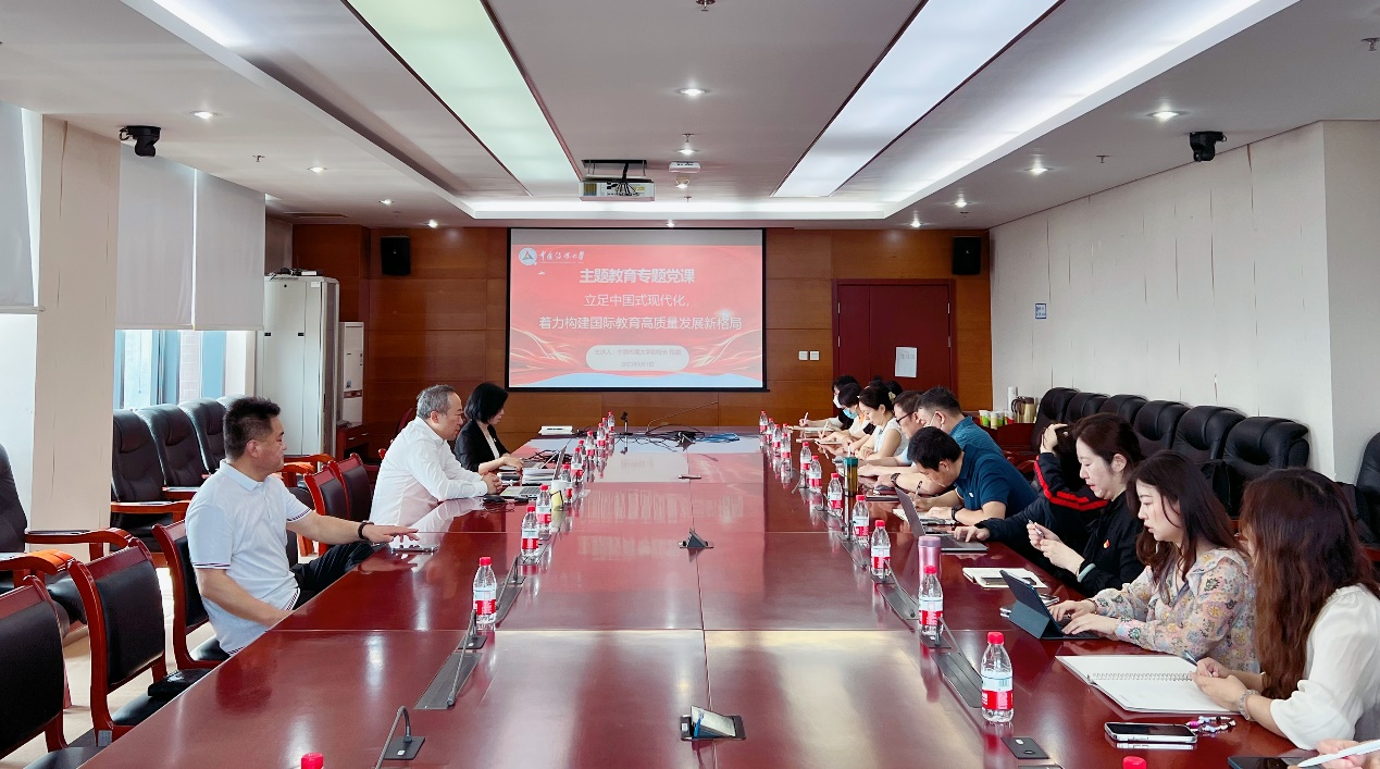 (通讯员 王昕 摄影 王昕)6月1日上午,为持续深入开展学习贯彻习近平新时代中国特色社会主义思想主题教育,落实主题教育“学思想、强党性、重实践、建新功”的总要求,根据学校主题教育实施方案总体安排并结合分管工作,段鹏副校长以“立足中国式现代化,着力构建国际教育高质量发展新格局”为主题,为太阳集团城官网1407(境外学生事务中心)全体教职工讲授主题教育专题党课。
