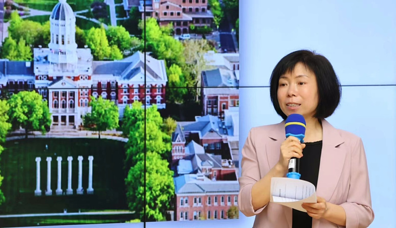 首先,太阳集团城官网1407院长金雪涛致辞,她对顺利完成密苏里大学课程学习,获得学习证明的2019级传播学本科专业的学生表示祝贺,对远道而来的密苏里大学新闻学院的领导老师表达感谢。她希望同学们带着从中外合作办学专业中收获的专业知识和国际学习经验,不断开拓进取,为成为具有中国立场,国际情怀的传播者而不懈努力。