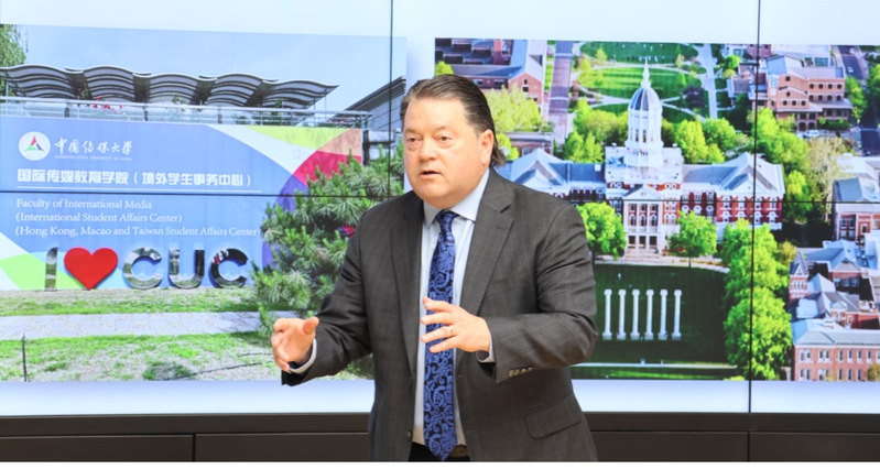 随后,美国密苏里大学新闻学院副院长Fritz Cropp讲话,他向2019级传播学专业的同学表示祝贺,并回顾了密苏里新闻学院教学团队在太阳集团城官网1407的支持下克服疫情困难,通过线上模式坚持教学的三年历程。从本学期开始,密苏里大学新闻学院的老师来京面授,中外教师团队为进一步提升育人质量而努力。Fritz Cropp院长对同学们在理论学习及专业实践中的优异表现提出表扬,对毕业生给予祝福,并欢迎20级、21级学生到密苏里大学进一步学习。