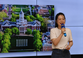 2019级传播学学生代表张鑫雨分享了学习心得体会,感谢中外双方教学团队为学生提供的丰富的教学资源和具有前沿性的实践活动,建议20级、21级学生面对未来丰富多彩的大学生活,要认真努力吸取专业知识,提升专业技能。
