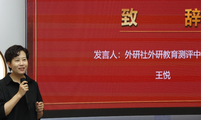 外语教学与研究出版社外研教育测评中心总经理王悦介绍了本次课程的整体安排和相关情况。她表示,“国际人才跨文化素养提升课程”是经多年打磨设计并特邀北京外国语大学老师和业界专家授课的一门以提升英语综合运用能力、跨文化素养以及培养创新思维的优质综合实践类课程,希望同学们能够投入其中且有所收获。