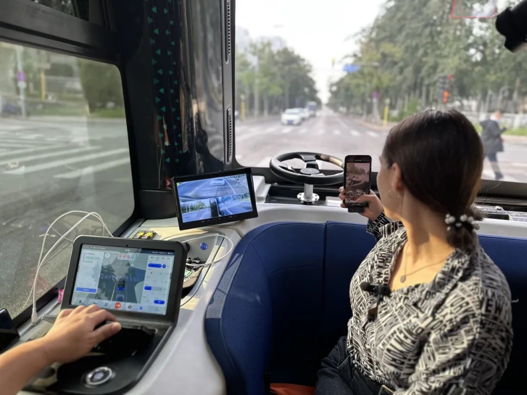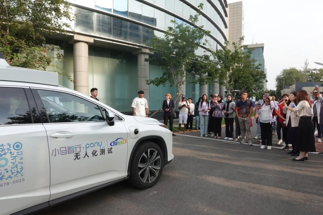 活动的最后一站,同学们来到自动驾驶示范区试乘自动驾驶车辆。看着无人车平稳、安全地行驶在路面上,上车前的好奇、犹豫都化解为了欣喜与惊叹。不少人纷纷表示,他们曾听说过无人车这一项技术,今天在北京亦庄终于有机会亲身体验,十分激动。