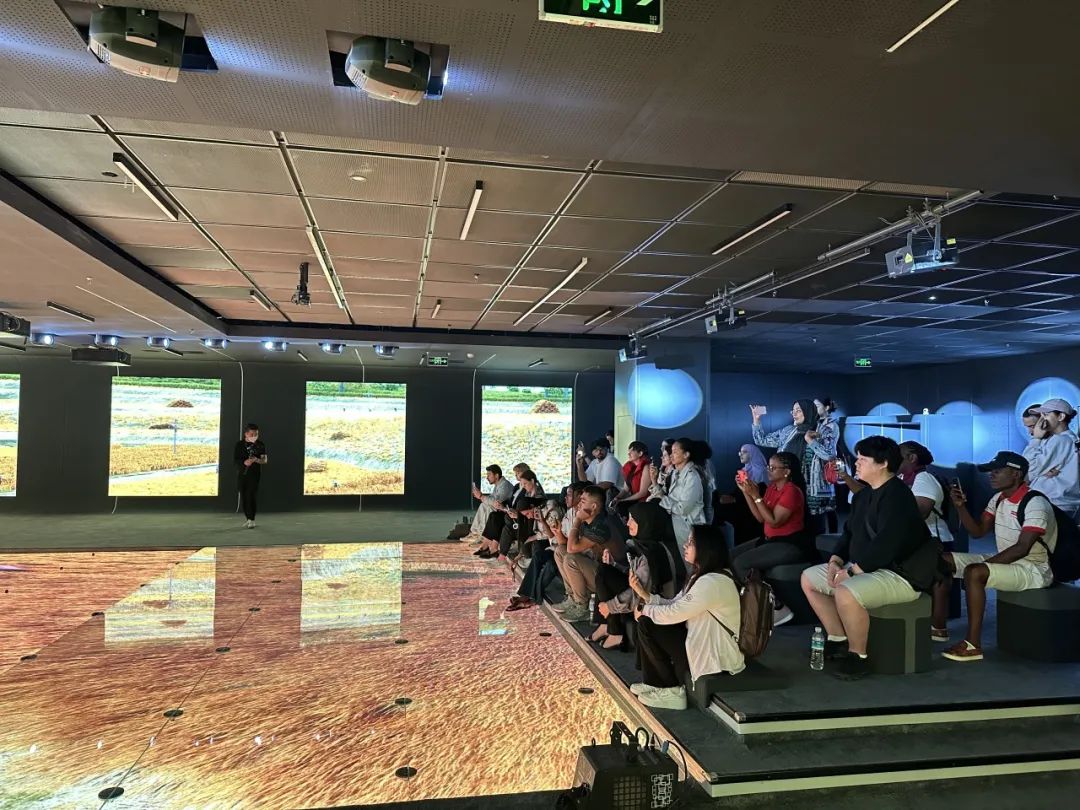 在管委会一层展厅,同学们沉浸式观看了亦庄科技宣传片。在交错的光影与环绕的音乐中,对其文化内涵与背景有了初步的了解。
