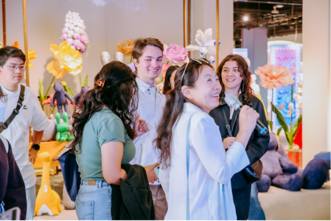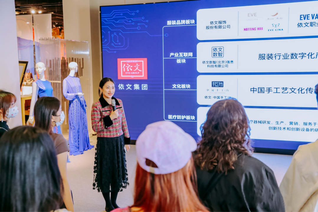此次参访活动主要分为参访依文集团文化、现场欣赏大秀、自由探访园区三个部分。活动伊始,依文集团商学院院长陶悦带领参观了依文城堡文化展区,为中外学生讲述了依文集团的业务布局和发展历程,重点介绍了依文集团的四大板块,即服装品牌板块、产业互联网板块、文化板块、医疗防护板块,带领学生们走进深山,共同倾听“深山动物园”、“深山服饰”、“深山玩偶”等独属于依文集团和深山绣娘的动人扶贫故事。透过依文集团的22000位深山绣娘、8000种中国民族美学纹样、1200家绣梦工厂,学生们逐渐读懂了大山、读懂了过去,并由此读懂了中国。