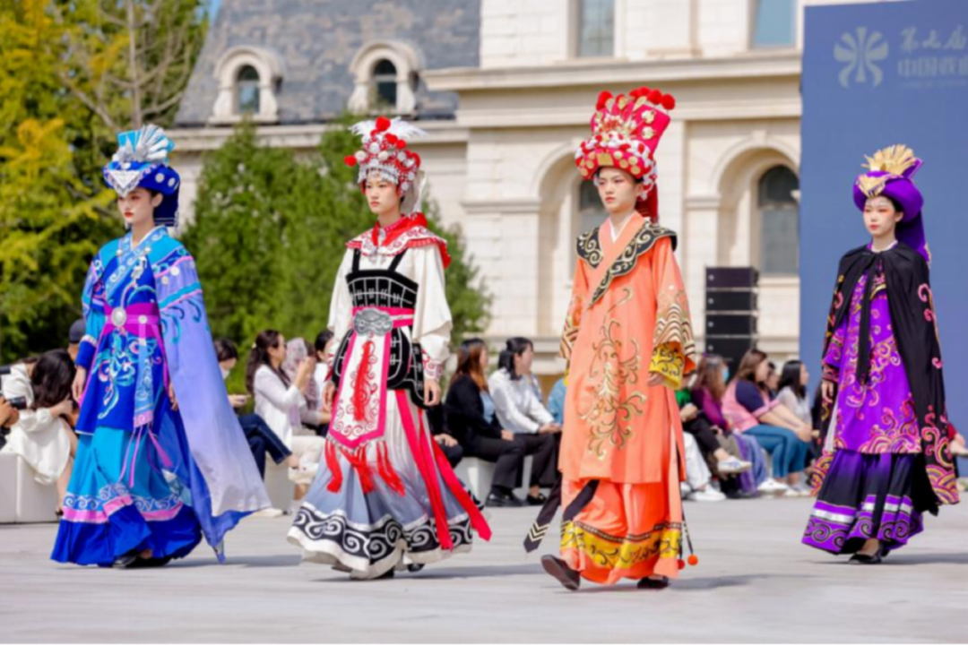 中午11时30分,“戏韵·绣梦”国潮时尚秀在北京园博园依文城堡前正式启幕。黔剧《奢香夫人》、布依戏《降三星》、侗戏《珠郎娘美》的相继上演作为服装大秀的戏引,将凝结着中国民族艺术风格的二十套传统民族戏服与四十套依文高定华服徐徐铺展在大众面前。学生们沉浸于国潮服饰的民族美学,穿过戏剧、透过服饰,了解到更为全面且更加动人的中国。