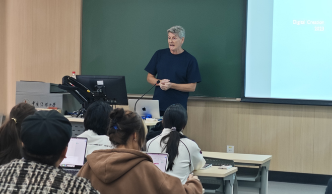 在“数字创意工作坊”的后续课程中,默里教授持续进行全流程指导,在课前进行英文资料阅读,课上讲授视觉文化理论,课中聚焦拍摄技能进行校内拍摄组织和小组指导,层层递进,培养学生的理论思考和动手能力。