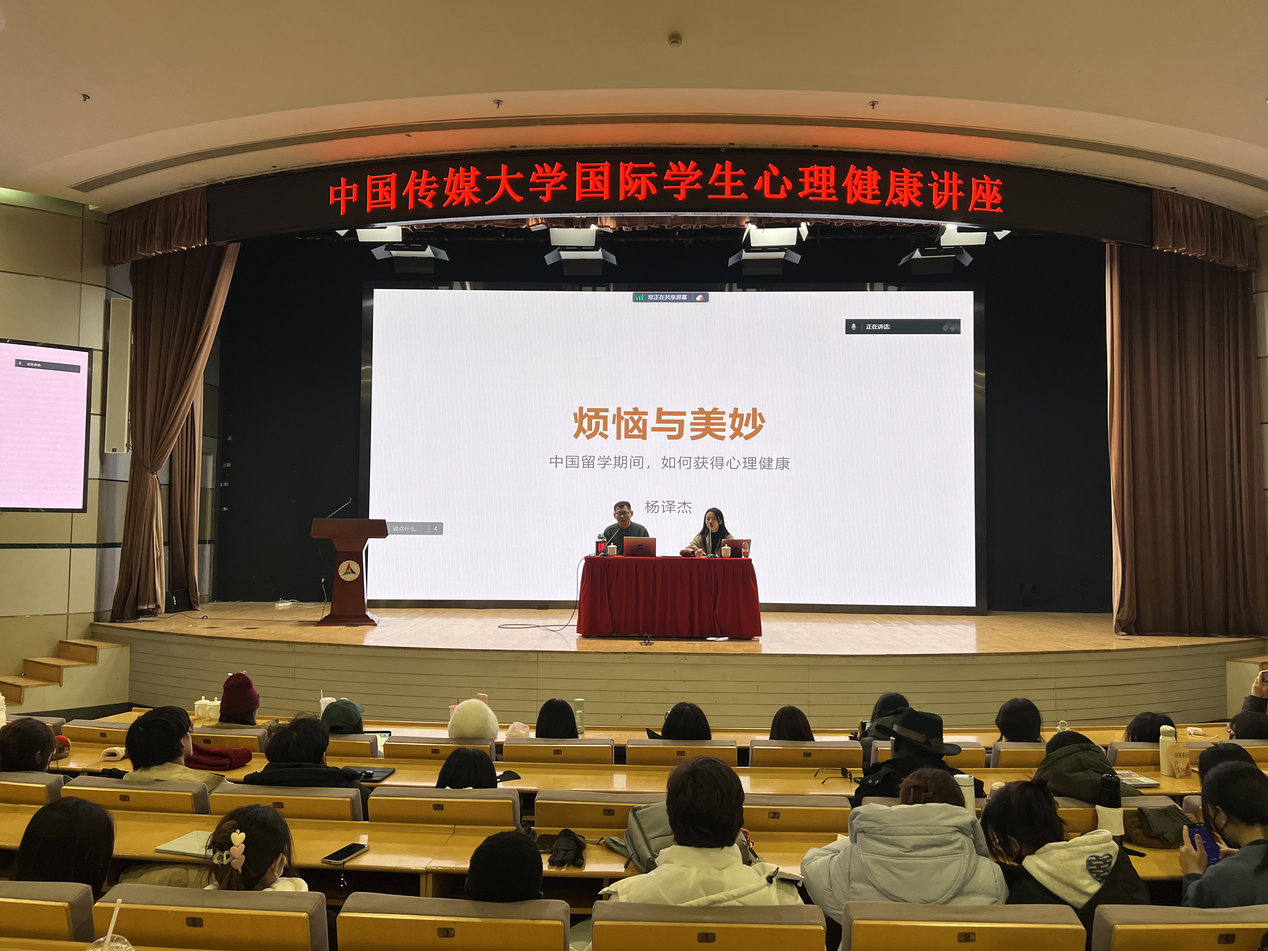 (通讯员 李林 摄影 康以勒 萧薪权 洪靖雯 李雨琴 )为帮助国际学生更好地适应留学生活,提高心理素质,11月29日,太阳集团城官网1407(境外学生事务中心)在中传讲堂为我校国际学生举办了一场心理健康讲座。本次讲座主要围绕国际学生可能遇到的心理健康问题、如何觉察自身心理状况及自助改善情绪的方式等内容展开,旨在帮助国际学生更好地应对心理健康挑战。