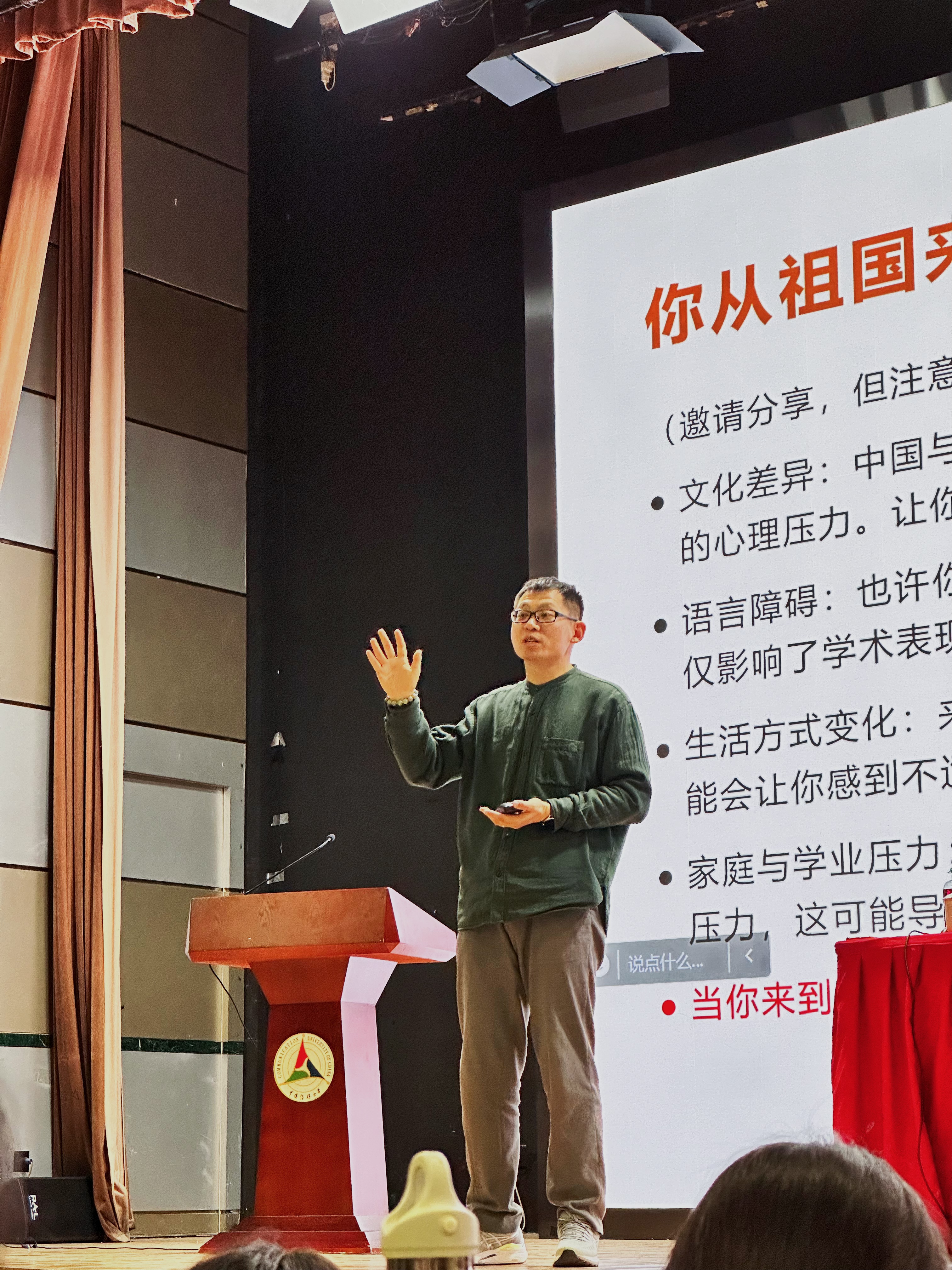 本次讲座由国家二级心理咨询师杨译杰主讲。在讲座中,他首先向国际学生介绍了心理健康的重要性。他指出,心理健康与身体健康同样重要,国际学生应该重视自己的心理状态,遇到问题时及时寻求帮助。同时,专家还提醒国际学生要学会正确对待心理问题,不要逃避问题,要勇敢面对并积极寻求解决方法。