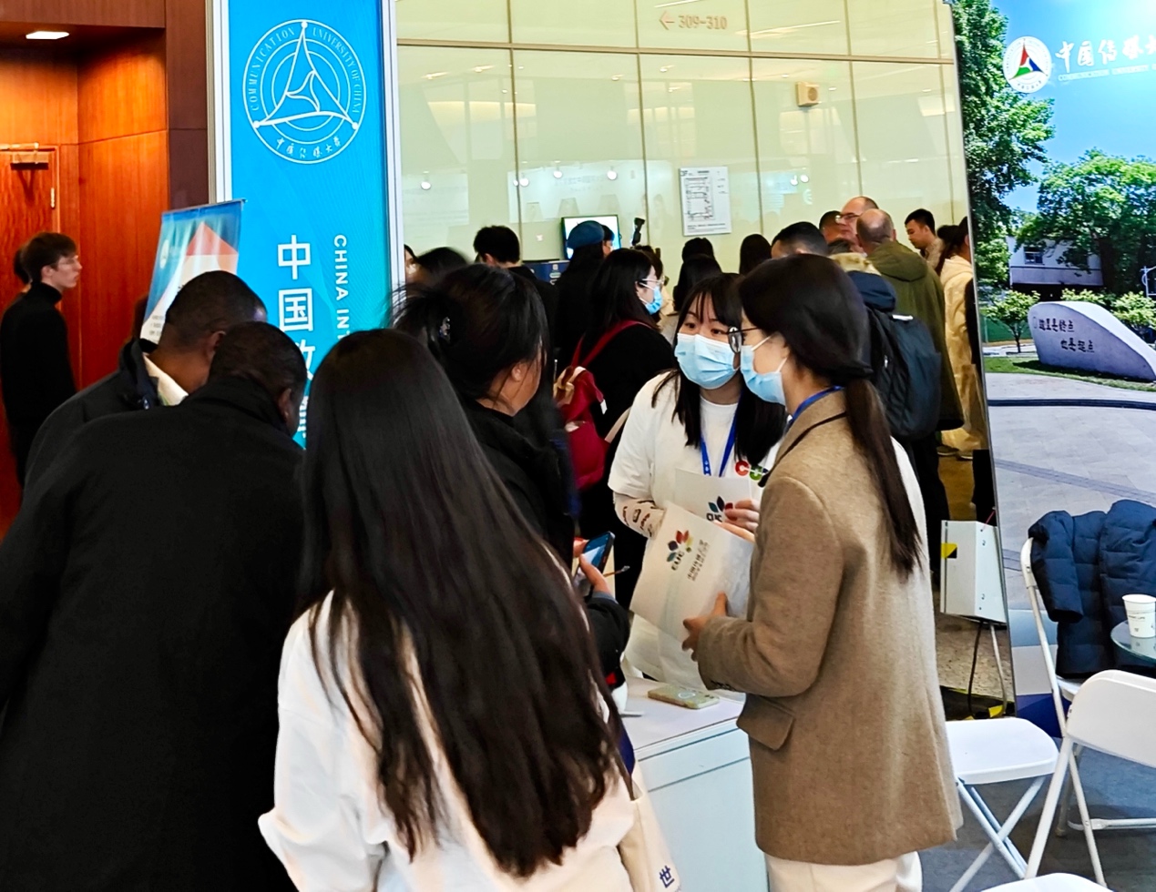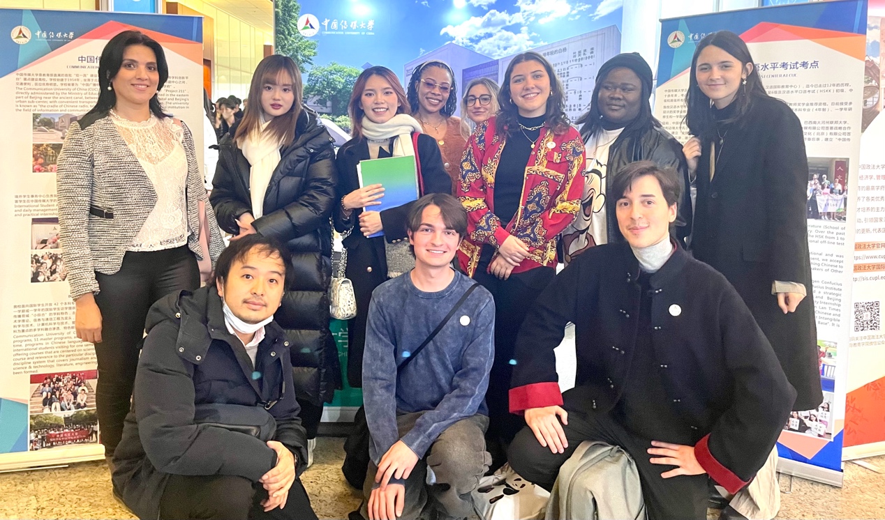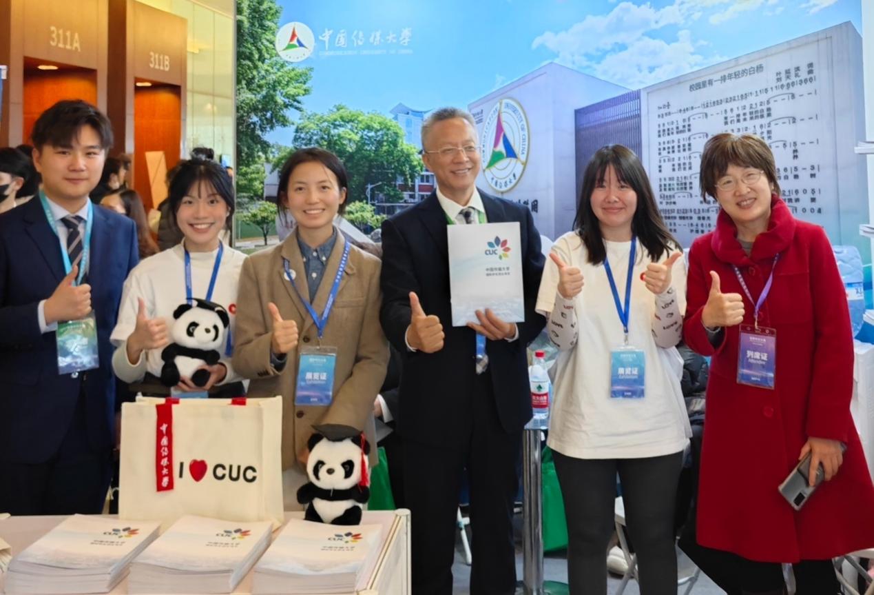 前来参观展览的我校汉语国际教育、汉语言文学专业国际学生来到展台,助力学校国际学生的招生宣传。