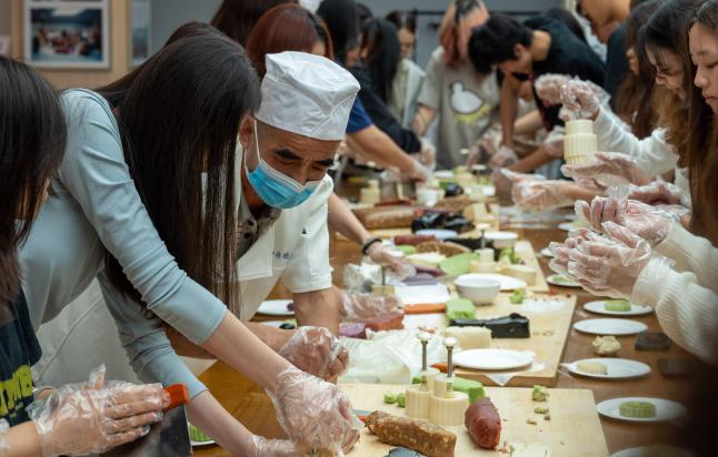 9月17日正值中秋佳节,宣讲会结束之后,境外学生事务中心组织新生进行月饼制作活动。大家围于桌前,共度中秋,把对家人的思念,对未来大学生活的期待,揉入到亲制的月饼中,载思亦载希冀,也将大家更好的融合在了一起。