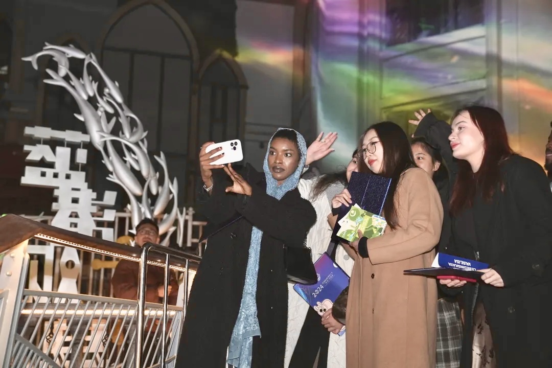 启动仪式结束后,40位“北京国际友好使者”参与了首次线下体验之旅,走进全国首个“入境消费友好型商圈”——蓝色港湾,亲身体验商圈便利化服务举措,并在夜幕笼罩下的亮马河畔,共同观赏了2024北京朝阳国际灯光节“吉凤朝阳”表演。