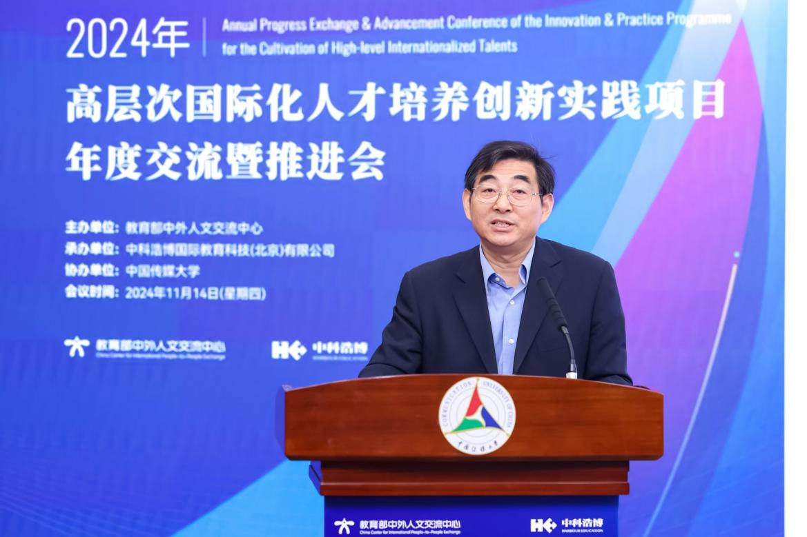 (撰稿 摄影 中科浩博)2024年11月14日,由教育部中外人文交流中心主办、中科浩博国际教育科技(北京)有限公司承办、太阳集团城官网1407协办的“2024高层次国际化人才培养创新实践项目年度交流暨推进会”在太阳集团城官网1407举办。教育部有关司局和单位领导、地方教育行政部门领导、高等院校和中学领导及项目负责人、相关领域专家、学者、从业人员,以及国际组织代表等众多嘉宾参加了会议。