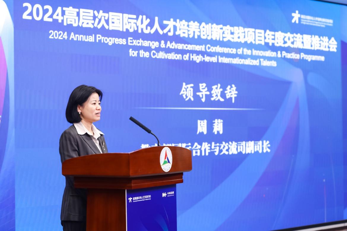 周莉副司长代表教育部国际合作与交流司对会议举办表示热烈祝贺。她指出,培养人才是国家和民族长远发展的大计,习近平总书记关于培养什么样的人才、怎样培养人才的重要论述,为深入推进高层次国际化人才培养工作指明了方向,提供了根本遵循。人文中心举办本次会议恰逢其时,有助于激发创新思维,推动相关工作向更高层次发展。未来,希望各方打造高水平交流平台,更好发挥教育国际交流合作在人才培养中的重要作用;聚焦国际化人才核心素养,培养满足国家和社会发展需求的国际化人才;集聚多元创新要素,以教育数字化赋能高层次国际化人才培养。