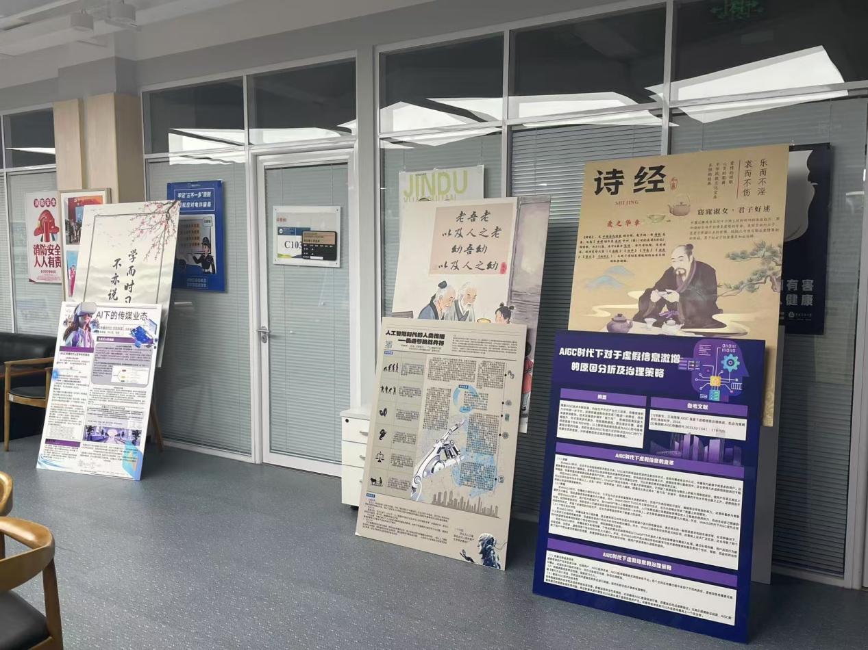 (通讯员 唐妮娜 摄影 任天威)2024年秋季学期读书周,学院发起了“AI 中的书香,智创新程”学术海报展活动。近日,所有参展学术海报作品均已打印制作完成并在一站式大厅展出。