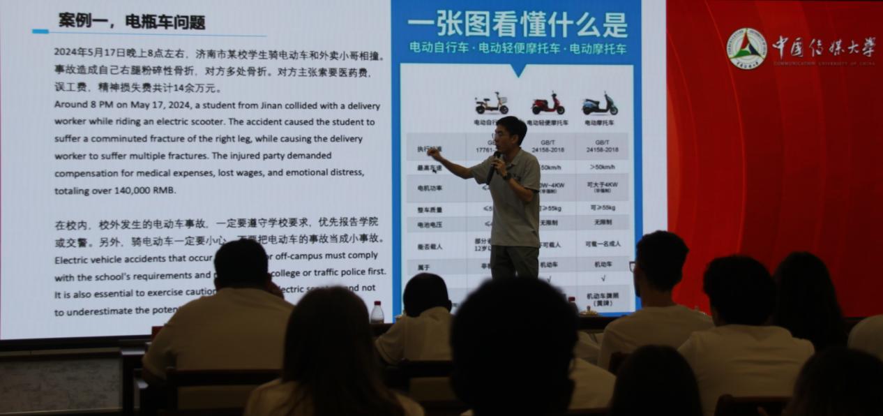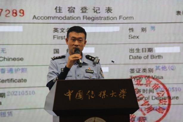 北京市公安局出入境管理局朝阳分局张国伟警官与王佳曦警官为新生讲解了签证与居留政策等相关内容;校保卫部治安科、校园秩序管理科负责人赵鹏为新生作了校园安全提示;联华国际保险经纪(北京)有限公司作了保险政策宣讲。境外学生事务中心的尹梦老师和郭玥鑫老师分别就文化课程及活动安排作了详细说明。