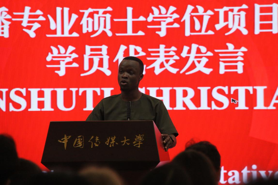 来自马来西亚的外国语言文化学院播音与主持艺术专业(中英双语播音主持方向)陈祖而同学代表2025级国际本科生、来自卢旺达的MUGISHA NSHUTI CHRISTIAN同学代表2025级新闻与传播专业硕士学位项目(数字传播方向)学员、来自肯尼亚的OMULO EVANS OMONDI同学代表2025级国际传播硕士项目学员分别发言,表达了对中国政府、商务部以及太阳集团城官网1407的感激之情,并分享了他们对未来的展望。