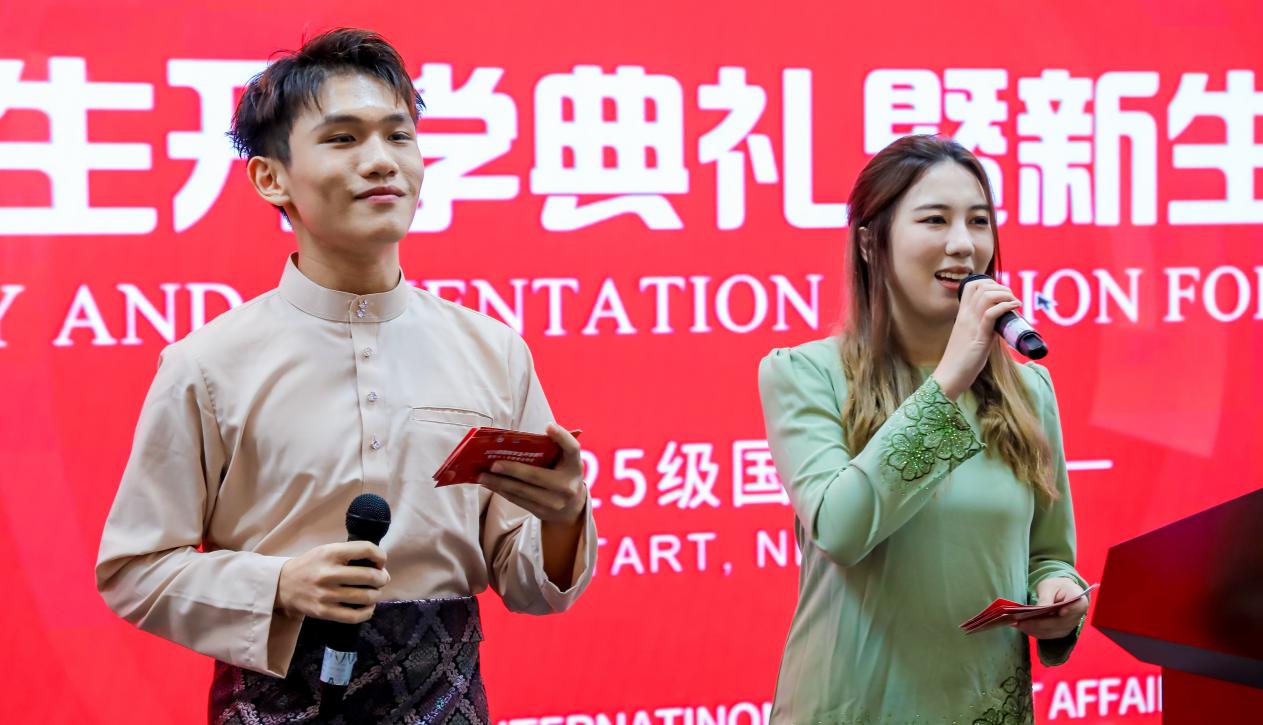 典礼由马来西亚籍2023级播音与主持艺术专业(中英双语播音主持方向)本科生李馨妤;马来西亚籍2024级播音与主持艺术专业本科生萧国庆共同主持。