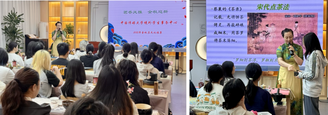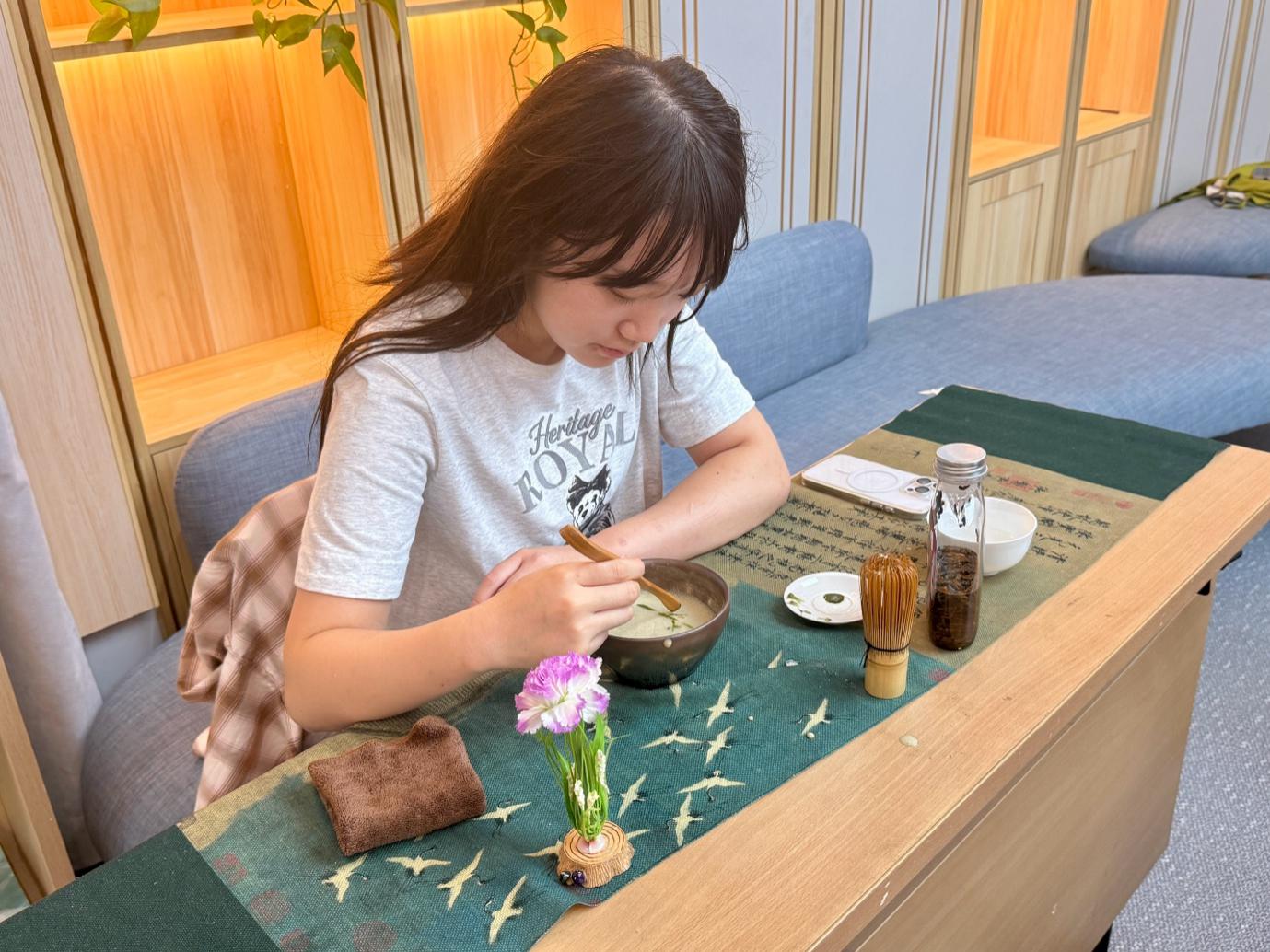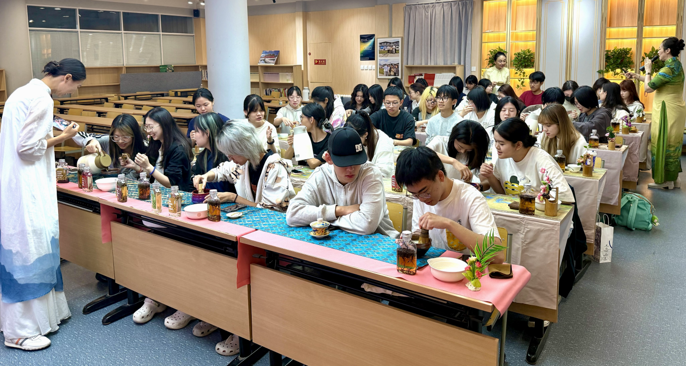 9月19日,境外学生事务中心特邀国家一级评茶技师、高级茶艺师吴凌老师,为2025级本科国际新生带来一场茶艺文化体验讲座。吴凌老师系统讲解了中国茶文化的历史渊源与分类特点,并重点演示了点茶技艺。在实践环节,同学们亲手操作茶具、调配茶汤,在茶香氤氲中感受点茶艺术的细致与雅趣,完成了一件件独具个性的点茶作品。