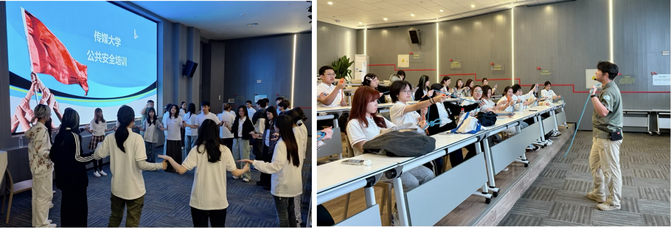 在实景体验环节,同学们分组参与交通安全、消防安全、社会安全、自然灾害应对及紧急救护等模拟场景训练。通过互动实操,大家掌握了基本自救与互救技能,进一步提升了应急处置能力。