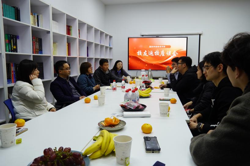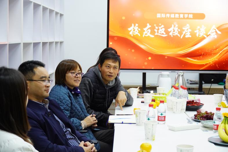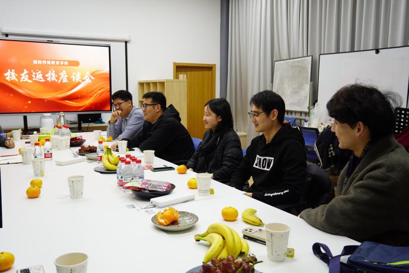 交流环节中,师生围坐畅谈,重温校园时光,分享成长故事。15级本科校友程柄舜作为学院首届本科生,回顾了参与学生组织建设的经历,感慨在学院的学习与锻炼为职业发展奠定了坚实基础;18级本科校友石昕然谈到,学院多元课程体系和人文关怀为学生多向成长提供了保障;20级本科校友李舒蔓表示,美方课程的小组合作模式有效提升了自身团队协作与跨文化沟通能力;20级本科校友张锦阳结合求职经验,建议在校生积极参与实习,拓宽视野、积累经验;22级研究生校友王子豪则分享了在海外学习的收获,感谢学院培养其国际视野,使其在全球化语境下更具竞争力。