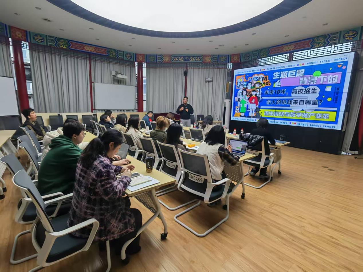 在随后举行的专题讲座中,360教育在线团队为在场师生带来一场前瞻性的行业报告。讲座指出,随着全国高考报名人数出现拐点,高校招生已从“规模扩张”进入“存量竞争”的新阶段,构建以数字资产为核心的招生新生态以及面向国际学生的招生与培养成为破局关键。